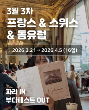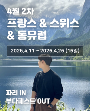 유럽 여행을 가고 싶지만 혼자 가기엔 무섭다구요? 계획짜는 게 막막하다구요? 나라 간 이동이 불편할 것 같나요? 걱정하지 마세요! 마이유럽 2030 패키지와 함께라면 해결!인생 첫 유럽 여행을 다녀왔습니다. 프랑스에서 스위스, 체코, 오스트리아, 부다페스트까지 어디 하나 거를 타선이 없는 나라들이었습니다.저에겐 꿈같은 시간이었고, 인생에 있어서 가장 큰 터닝 포인트가 되는 여행이었습니다.사진으로만 봤던 에펠탑, 말로만 들었던 스위스 설경, 버킷리스트 중 하나였던 겨울 프라하, 낭만의 도시 부다페스트 야경이 아직까지 눈 앞에 아른거립니다.어쩌면 저는 아직 그 시간에 머물러 있는지도 모르겠습니다.이제는 잠시 기억 저편에 묻어두고, 앞으로 살아가면서 지치고 힘들 때마다 다시 그 시간으로 돌아오려고 합니다.잠시나마 동화 속 주인공이 된 기분이었고, 평생 절대 잊지 못할 기억을 선물해주셔서 감사합니다.마이유럽 덕분에 좋은 사람들을 만나서 행복한 여행을 했고, 예림 가이드님 덕분에 안전하고 편안하게 여행을 마쳤습니다.