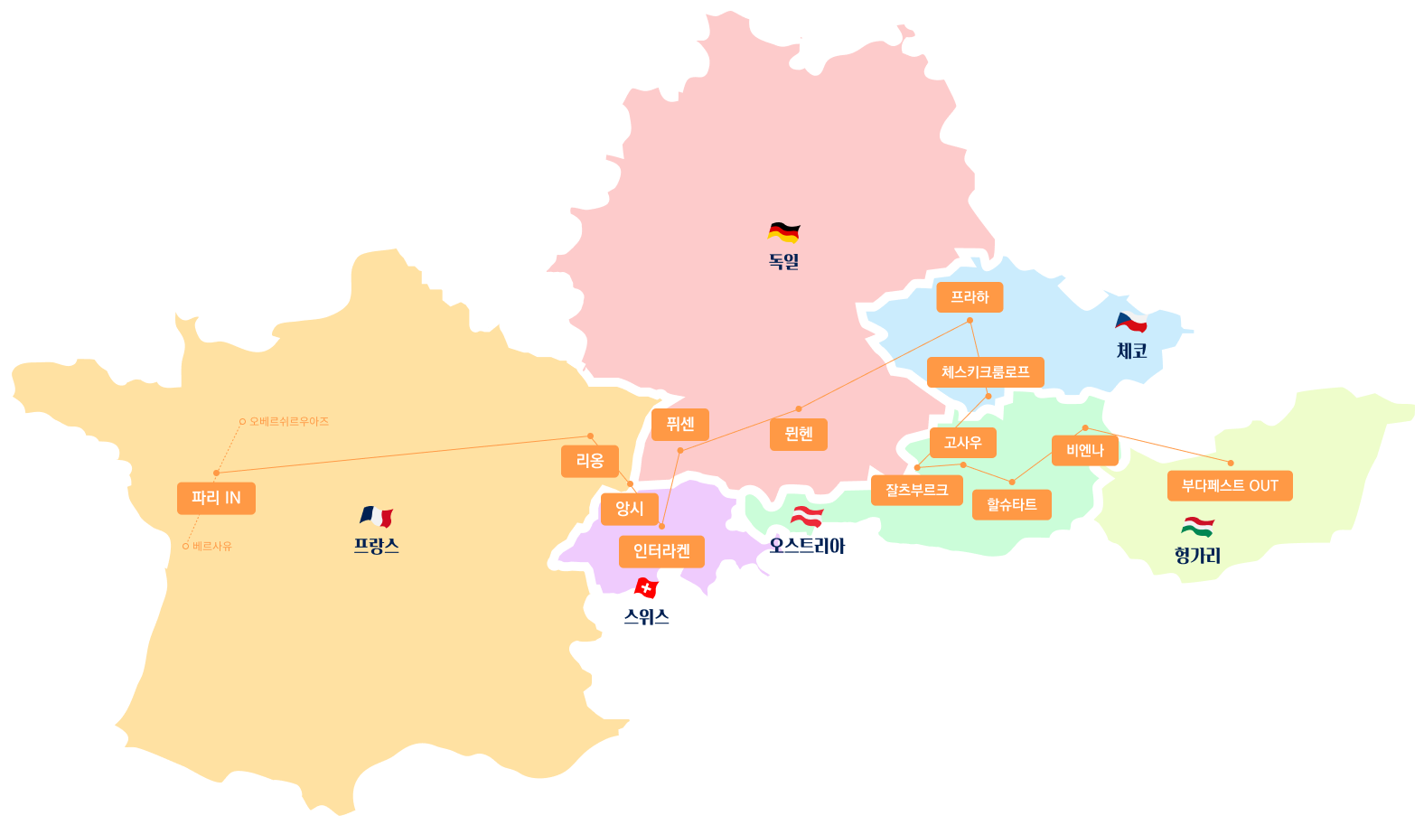 프랑스 파리 (3박) > 베르사유 & 오베르쉬르우아즈 > 리옹 (1박) > 앙시 > 스위스 인터라켄 (2박)