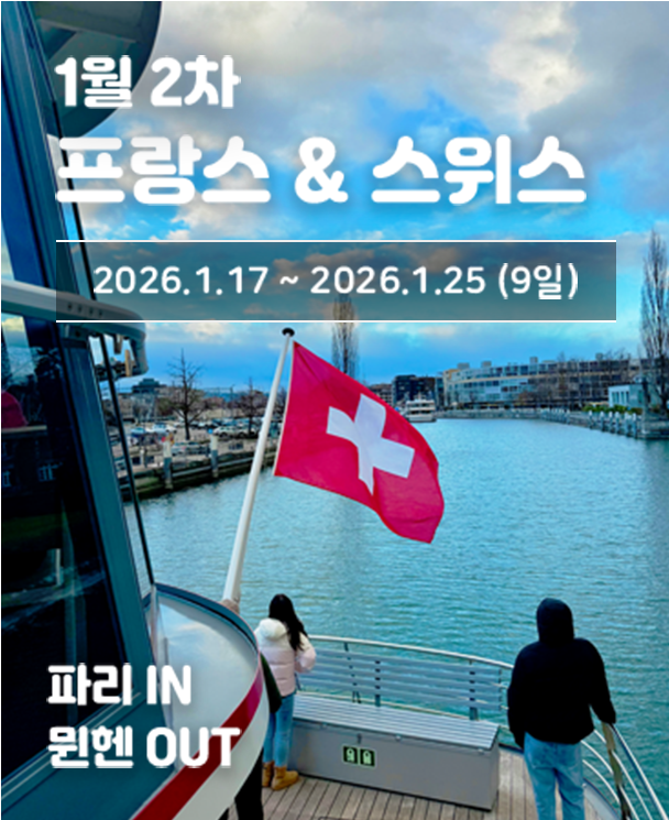 회사생활을 하면서 직장권태기가 와서 나에게 주는 선물로 여행을 가볼까 하고 휴가내어 9일 프랑스&스위스 마이유럽 세미패키지에 참여하게 되었어요:)처음엔 패키지 여행만 알았지 세미 패키지는 처음 접했는데 내용을 보니 훨씬 좋을 것 같아서 예약했어요 유럽여행 준비 중 가장 걱정 되었던 부분 중 하나가 소매치기와 무거운 캐리어를 끌고 다니는 부분이었는데, 도시간 이동이나 숙소에서 다른 숙소로 이동할 때엔 전용버스로 이동해 매번 큰 짐을 가지고 다닐 필요가 없어서 좋았습니다. 항시 필요한것들 위주로만 들고 다녀서 소매치기 걱정도 크게 되지 않았구요. 게다가 이번 여행에서 함께 만나서 같이 다닌 일행분들과 이번 패키지 여행했었던 일행분들도 다들 너무 좋으셔서 간간히 마주치면 인사도 따뜻하게 나누고 함께 하는 것만으로도 든든했습니다. 이번여행을 통해 잊지 못할 추억 하나가 생겼네요^^ 마이유럽 좋은 추억 만들어주셔서 감사합니다 🩵흠... 하지만 뭐든지 100프로 만족할수는 없는 법.. 단점이라고 하면.... 날씨가 도와주질 않더라고요...여행엔 무엇보다도 날씨인데.. 그래서 제약되는 부분이 많아 아쉬웠습니다.. 다음엔 여름에 한번 가보려구요:-)