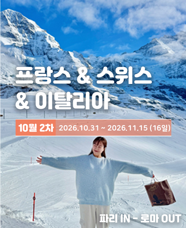 안녕하세요, 이번에 마이유럽을 통해서유럽 3국 세미패키지로 다녀왔어요!프랑스, 스위스, 이탈리아 이렇게세 나라를 한 번에 도는 일정이라자유여행으로 가기엔 동선 짜는 게 꽤 어렵더라고요.그래서 고민하다가 세미패키지로 신청했는데너무너무 만족스러웠던지라 후기 남겨요!파리에서 시작해서 리옹, 인터라켄, 윈헨,베네치아, 피렌체, 로마로 이어지는 일정이었습니다.나라가 여러 개라 이동이 가장 걱정이었는데전용버스로 숙소 앞에서 타고 내리는 구조라생각보다 훨씬 편했습니다!유럽 자유여행 해보신 분들은 아시겠지만캐리어 끌고 기차 환승하는 게 은근 힘들잖아요?그런 스트레스 없이 전용 버스에 짐 싣고 앉아서 이동하니까차창 밖 풍경 보는 것도 여행 같더라고요 ㅎ0ㅎ파리에서는 전일 자유일정이 있어서루브르 박물관도 다녀오고, 몽마르트 언덕도 올라가고저녁엔 센강 따라 산책도 했습니다.베네치아에서도 전일 자유일정이 있어서사실상 패키지 여행이라고 하기엔애매할 정도로 편안하고 좋앗어요!단체로 계속 붙어 다니는 일정도 아니었고각 도시마다 자유시간이 꽤 넉넉했거든요!특히 인터라켄에서도 전일 자유시간이라융프라우 가는 친구들이랑 같이 올라갔다가내려와서 마을 산책하면서 풍경 구경했는데 좋았습니다.스위스는 아무래도 그냥 걷기만 해도 힐링이더라고요 :)숙소는 3~4성급 호텔 위주였는데전체적으로 깔끔하고 위치도 괜찮았습니다.2인 1실이었지만 크게 불편한 점은 없었고조식 포함이라 아침 걱정도 없었어요.여행 매니저님도 정말 친절하셨고궁금한 거 물어보면 바로 알려주셔서처음 가는 유럽여행이었는데 정말 즐겁고마음 편안하게 잘 즐기다 왔어요.평소 유럽 자유여행 가고 싶은데동선 짜는 게 막막하신 분들이나복잡하게 이동하는거 싫어하시는 분들이라면세미패키지 추천해드리고 싶어요!