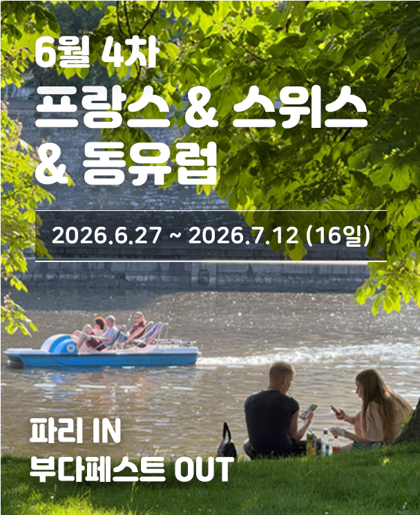 이번에 가족들과 함께 프랑스&스위스&동유럽 16일 여행을 다녀왔습니다. 여행을 준비하는 동안 가족들과 함께하는 첫 유럽여행이여서 기대도 크고 걱정도 있었지만, 출발하기 전부터 다양한 정보들과 패키지 내 포함된 투어들로 일정을 편하게 짤 수 있었어요! 각 도시별로 분위기를 천천히 즐길 수 있었고, 자체적으로 운영하는 투어를 통해 설명을 듣고 관광을 할 수 있다는 점이 인상적이었습니다. 부모님들과 함께 한 여행이다보니 밤늦게 돌아다니는 것에 대한 걱정이 있었는데 야경투어도 진행을 해 부모님들과 파리 야경과 프라하 야경, 부다페스트 야경을 편하게 관광할 수 있었어요!특히 스위스에서 사진으로만 보던 풍경이 실제로 눈앞에 펼쳐지니 모두 입을 다물지 못했습니다. 부모님도 계속 감탄을 하시고 눈을 떼지 못하는그 모습만으로도 큰 보람을 느꼈어요. 여행 중간중간 여유를 위해 반나절 정도는 자유 시간을 가졌습니다. 엄마는 카페에서 디저트를 즐기고, 아빠는 근처 시장을 둘러보며 현지 분위기를 느끼셨어요. 저는 언니와 함께 사진을 찍으며 산책했습니다. 이렇게 각자도, 함께도 즐길 수 있었던 점이 가족 여행의 좋은 부분이었습니다. 전체적으로 이번 유럽 여행은 풍경도 좋았지만, 가족들과 함께여서 더욱 특별했습니다.오랜만에 느긋하게 시간을 보내고, 함께 웃고 오햐를 풀며 이야기하는 순간들이 오래 기억에 남을 것 같아요.다음에도 기회가 된다면 또 마이유럽을 통해서 가족 여행을 해보려고 해요!