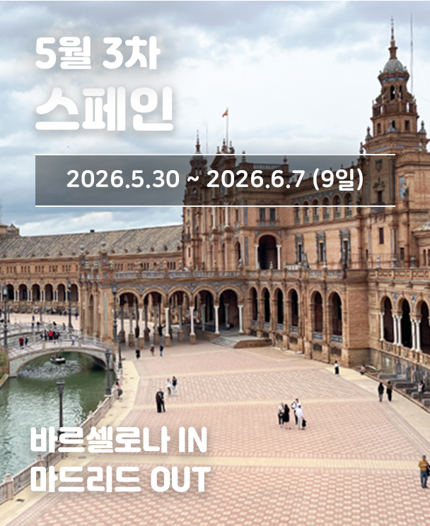 30대 딸이랑 스페인 여행 계획 하고 있었는데 자유여행으로 가면 서로 너무 힘들 것 같았어요.그래서 패키지여행을 알아보다가 2030세미패키지라는걸 알게 되었습니다.여행 떠나기 전에는 항공권, 여행자 보험, 유심 이심 알아봐주고,여행지랑 맛집 추천 리스트 보내주셔서 따로 알아볼 필요 없어서 정말 편했어요.첫날 스페인 도착해서 장거리 비행에 힘들었는데 공항으로 전용 버스가 픽업오는 것도 정말 좋았답니다.숙소도 어떻게 이렇게 위치 좋은곳, 깨끗하고 편한곳으로 잡아주셨는지하루도 만족스럽지 않은 곳이 없었고, 매일 아침에 호텔에서 조식을 먹고 시작할 수 있어서아침 매번 챙겨 먹는 저한테는 이만한 호사가 없었어요.9일 일정이라 여러 도시들 다 볼 수 있을까 싶었는데시간도 효율적으로 딱 짜서 이동하니 톨레도나 말라가, 세비야, 그라나다 같은 도시들도 전부 경험해 볼 수 있었고숙소 앞까지 전용 버스가 와서 픽업해 주고 다음 숙소 앞에 내려주고무거운 짐 들고 이동하고 뭐하고 할 것도 없이 덕분에 여행 내내 편했네요.덕분에 잊지 못할 스페인 여행을 무사히 마쳤습니다. 감사합니다.
