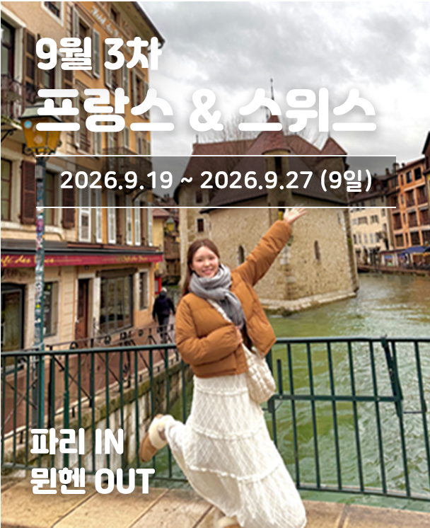 이전에 프랑스와 스위스를 다녀온 적이 있어서이번에는 조금 다른 지역을 중심으로 여행하고 싶다는 생각을 하던 중, 마이유럽의 프랑스+스위스 9일 세미패키지를 선택하게 되었어요. 자유여행으로는 가기 어려운 리옹, 안시, 노이슈반슈타인 성 등의 근교 투어가 포함되어 있어서 일정이 정말 알찼습니다. 특히 리옹과 안시는 교통편이 복잡해 자유여행으로는 고민이 많았던 지역인데, 전용 버스를 통해 편하게 이동할 수 있어 체력적으로도 훨씬 여유로웠어요. 도시간 이동도 모두 버스로 진행되어 캐리어를 들고 기차를 타거나 환승할 필요가 없다는 점이 너무 편리했습니다. 숙소 또한 4성급 이상의 호텔로 구성되어 있었고, 매일 조식이 포함되어 있어서 아침마다 든든하게 하루를 시작할 수 있었어요. 무엇보다 함께 여행한 김하진 가이드님께서 각 도시별로 구글맵 링크와 꿀팁들을 꼼꼼히 공유해주셔서 따로 찾아보지 않아도 충분히 알차게 즐길 수 있었습니다. 자유로움과 편안함을 모두 챙길 수 있었던 여행이라 정말 즐겁고 행복했습니다☺️
