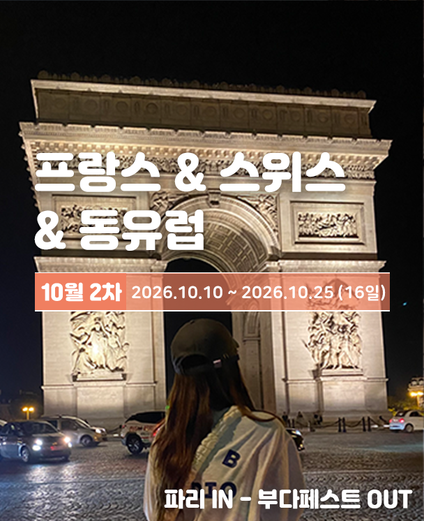 "2030 사이에 낀 50대 엄마, 딸 덕분에 인생의 봄날을 여행하고 왔습니다."처음엔 딸이 '마이유럽' 새미패키지를 같이 가자고 했을 때 걱정이 앞섰습니다. 20대, 30대 젊은 친구들 틈에서 민폐가 되진 않을지, 체력이 따라줄지.세계정세가 시끄러워 고민이 많았거든요. 하지만 결과적으로는 제 인생에서 가장 잘한 선택 중 하나가 되었습니다.우리 팀 친구들이 어찌나 밝고 예의 바른지, 덕분에 저도 20대로 돌아간 기분이었어요. 특히 예림가이드님께 정말 감사 인사를 전하고 싶습니다. 6개국(프랑스, 스위스, 독일, 체코, 헝가리, 오스트리아)을 도는 강행군 속에서도 시종일관 친절하게 챙겨주시고, 제가 놓칠 수 있는 부분까지 세심하게 배려해주시는 모습에 감동했습니다.프랑스의 화려함부터 스위스의 압도적인 자연, 그리고 동유럽의 고즈넉한 풍경까지... 딸의 손을 잡고 걷던 그 모든 거리들이 아직도 눈에 선합니다. 세미패키지라 이동은 편하면서도 자유시간에는 딸과 오붓하게 커피 한 잔 마시며 대화할 수 있어 더 귀한 시간이었습니다."내가 가도 될까?" 고민하시는 동년배 분들이 계신다면 꼭 도전해보라고 말씀드리고 싶어요. 좋은 예림가이드님과 멋진 청년들, 그리고 사랑하는 딸과 함께한 이번 여행은 제게 평생 잊지 못할 선물이 되었습니다. 훌륭한 여행을 만들어준 마이유럽과 예림가이드님께 팀 친구분들에게 다시 한번 감사드립니다.