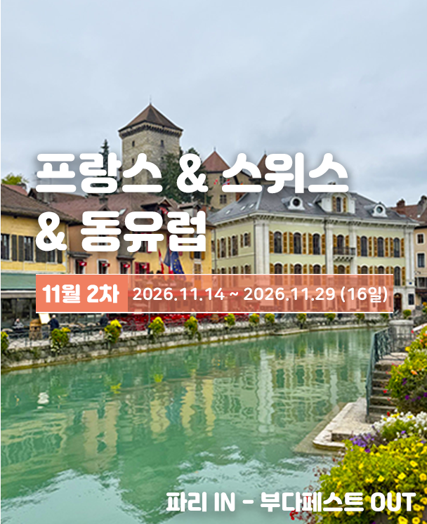 "2030 사이에 낀 50대 엄마, 딸 덕분에 인생의 봄날을 여행하고 왔습니다."처음엔 딸이 '마이유럽' 새미패키지를 같이 가자고 했을 때 걱정이 앞섰습니다. 20대, 30대 젊은 친구들 틈에서 민폐가 되진 않을지, 체력이 따라줄지.세계정세가 시끄러워 고민이 많았거든요. 하지만 결과적으로는 제 인생에서 가장 잘한 선택 중 하나가 되었습니다.우리 팀 친구들이 어찌나 밝고 예의 바른지, 덕분에 저도 20대로 돌아간 기분이었어요. 특히 예림가이드님께 정말 감사 인사를 전하고 싶습니다. 6개국(프랑스, 스위스, 독일, 체코, 헝가리, 오스트리아)을 도는 강행군 속에서도 시종일관 친절하게 챙겨주시고, 제가 놓칠 수 있는 부분까지 세심하게 배려해주시는 모습에 감동했습니다.프랑스의 화려함부터 스위스의 압도적인 자연, 그리고 동유럽의 고즈넉한 풍경까지... 딸의 손을 잡고 걷던 그 모든 거리들이 아직도 눈에 선합니다. 세미패키지라 이동은 편하면서도 자유시간에는 딸과 오붓하게 커피 한 잔 마시며 대화할 수 있어 더 귀한 시간이었습니다."내가 가도 될까?" 고민하시는 동년배 분들이 계신다면 꼭 도전해보라고 말씀드리고 싶어요. 좋은 예림가이드님과 멋진 청년들, 그리고 사랑하는 딸과 함께한 이번 여행은 제게 평생 잊지 못할 선물이 되었습니다. 훌륭한 여행을 만들어준 마이유럽과 예림가이드님께 팀 친구분들에게 다시 한번 감사드립니다.