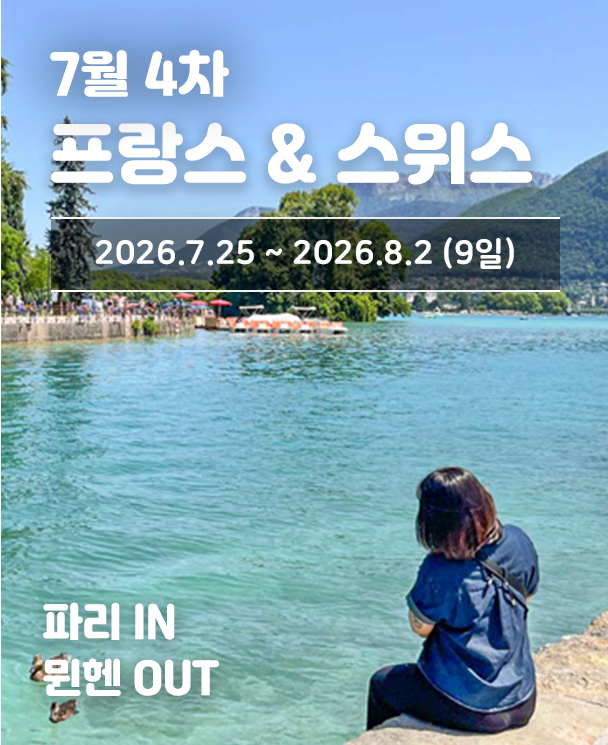 이전에 프랑스와 스위스를 다녀온 적이 있어서이번에는 조금 다른 지역을 중심으로 여행하고 싶다는 생각을 하던 중, 마이유럽의 프랑스+스위스 9일 세미패키지를 선택하게 되었어요. 자유여행으로는 가기 어려운 리옹, 안시, 노이슈반슈타인 성 등의 근교 투어가 포함되어 있어서 일정이 정말 알찼습니다. 특히 리옹과 안시는 교통편이 복잡해 자유여행으로는 고민이 많았던 지역인데, 전용 버스를 통해 편하게 이동할 수 있어 체력적으로도 훨씬 여유로웠어요. 도시간 이동도 모두 버스로 진행되어 캐리어를 들고 기차를 타거나 환승할 필요가 없다는 점이 너무 편리했습니다. 숙소 또한 4성급 이상의 호텔로 구성되어 있었고, 매일 조식이 포함되어 있어서 아침마다 든든하게 하루를 시작할 수 있었어요. 무엇보다 함께 여행한 김하진 가이드님께서 각 도시별로 구글맵 링크와 꿀팁들을 꼼꼼히 공유해주셔서 따로 찾아보지 않아도 충분히 알차게 즐길 수 있었습니다. 자유로움과 편안함을 모두 챙길 수 있었던 여행이라 정말 즐겁고 행복했습니다☺️