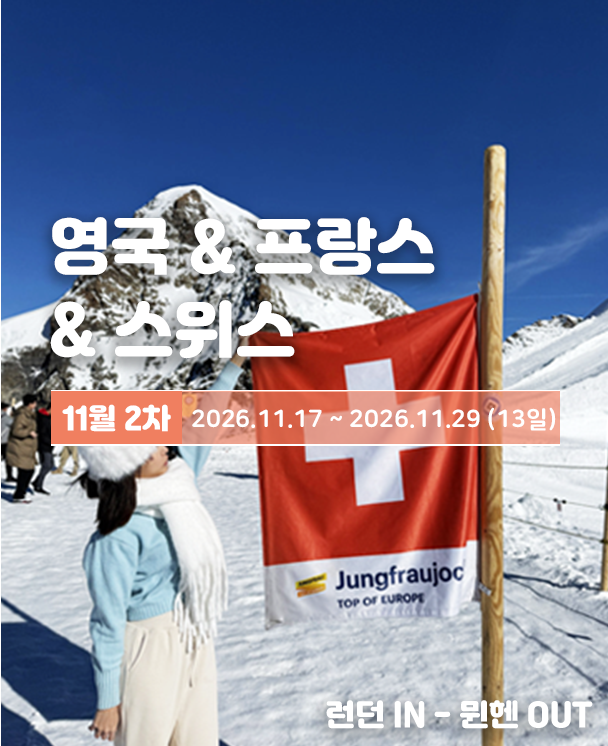 안녕하세요:)30대에 처음으로 유럽 세미패키지 처음으로 다녀온 후기 투척합니다.2.24.~3.7. 영국 프랑스 스위스 이곳을 다녀왓어요.지극히 P인 사람이라 여행도 즉흥에서 급하게 정하여 가게 되었습니다.태어나서 난생처음 가보는 첫 해외여행인데 유럽이라서 걱정이 이만저만이 아니더라고요.일하고 있을때는 시간이 안되서 돈이 있을때는 시간이 없고 시간이 없을때는 돈이 없는 아이러니한 구조에 언젠간 한번은 가보고 싶은 유럽여행을 이번에 도전해 보게 되었습니다.자유여행으로 매번 항공권만 먼저 알아보다가 유럽의 여러나라를 한번에 단기에 가는 것이라 여러 후기를 토대로 숙소가 2인1실이라는 평에 바로 마이유럽을 예약하였어요.예약하니 추천 항공권도 알아봐주시고, 비슷한 것에 급하게 끊고 진짜 즉흥으로 다녀왔습니다.공항에 내리자마자 샌딩 나와주셨고, 마주한 공항의 하늘 마저 이뻤던 여행 첫날이었어요.런던은 원래 처음에 정보도 그리 많이 없고 그렇게 가고 싶던 곳이 아니였는데 생각보다 너무 매력적이고 좋았어요.밤거리도 너무 좋았고, 거리거리 마다 런던스럽단 걸 느꼇습니다. 또 마이유럽에서 소도시여행도 포함되어있는데 옥스퍼드에 가본 것도 너무 좋았어요.중간중간에 자유와 소도시 일정이 포함되어서 하루에 끝을 다음날 여행지 하고 싶은 것 찾는 재미가 있었습니다. 또 소도시 갈때마다 가이드님이 진짜 선생님처럼 하나씩 설명해주시고, 배경지식이 하나도 없이 열심히 찾아 다닐 수 있어서 너무 편했어요.파리와 스위스를 갈때에도 치안과 소매치기에 걱정했는데, 대부분 개개인으로 온 일행들이라 서로 친해져서 서로 사진찍어주고 다양한 의견을 나눌 수 있어서 너무 뜻깊은 시간이었습니다.여러나라를 가는데 개인으로 와서 그 무거운 짐 들고 다닐 생각하면 아직도 간담이 서늘한데 전용차량으로 숙소앞에 내려주고 숙소마다 다 엘리베이터가 있어서 편하게 이동할 수 있었던 것 같아요. 파리에서는 3일 연속 에펠탑을 바라보며 여유를 즐기고, 스위스에서는 알프스산의 기운을 받아 올해의 더 좋은 기운을 받아서 돌아 올 수 있었습니다.이번 여행에서는 날씨가 진짜 너무 좋아서 겨울에 해보는 첫 여행이었는데 너무 좋았던 것 같아요.다음에 기회가 된다면 또 와봐도 좋을 것 같아요.