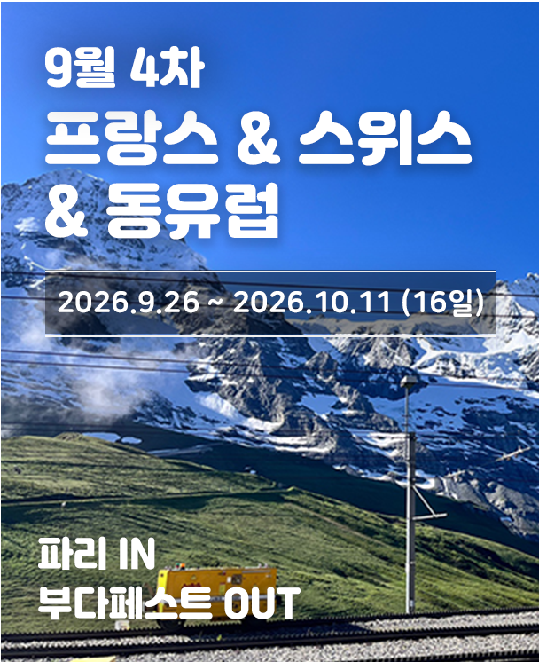이번에 가족들과 함께 프랑스&스위스&동유럽 16일 여행을 다녀왔습니다. 여행을 준비하는 동안 가족들과 함께하는 첫 유럽여행이여서 기대도 크고 걱정도 있었지만, 출발하기 전부터 다양한 정보들과 패키지 내 포함된 투어들로 일정을 편하게 짤 수 있었어요! 각 도시별로 분위기를 천천히 즐길 수 있었고, 자체적으로 운영하는 투어를 통해 설명을 듣고 관광을 할 수 있다는 점이 인상적이었습니다. 부모님들과 함께 한 여행이다보니 밤늦게 돌아다니는 것에 대한 걱정이 있었는데 야경투어도 진행을 해 부모님들과 파리 야경과 프라하 야경, 부다페스트 야경을 편하게 관광할 수 있었어요!특히 스위스에서 사진으로만 보던 풍경이 실제로 눈앞에 펼쳐지니 모두 입을 다물지 못했습니다. 부모님도 계속 감탄을 하시고 눈을 떼지 못하는그 모습만으로도 큰 보람을 느꼈어요. 여행 중간중간 여유를 위해 반나절 정도는 자유 시간을 가졌습니다. 엄마는 카페에서 디저트를 즐기고, 아빠는 근처 시장을 둘러보며 현지 분위기를 느끼셨어요. 저는 언니와 함께 사진을 찍으며 산책했습니다. 이렇게 각자도, 함께도 즐길 수 있었던 점이 가족 여행의 좋은 부분이었습니다. 전체적으로 이번 유럽 여행은 풍경도 좋았지만, 가족들과 함께여서 더욱 특별했습니다.오랜만에 느긋하게 시간을 보내고, 함께 웃고 오햐를 풀며 이야기하는 순간들이 오래 기억에 남을 것 같아요.다음에도 기회가 된다면 또 마이유럽을 통해서 가족 여행을 해보려고 해요!