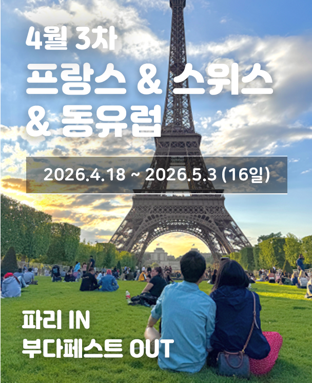 이번에 가족들과 함께 프랑스&스위스&동유럽 16일 여행을 다녀왔습니다. 여행을 준비하는 동안 가족들과 함께하는 첫 유럽여행이여서 기대도 크고 걱정도 있었지만, 출발하기 전부터 다양한 정보들과 패키지 내 포함된 투어들로 일정을 편하게 짤 수 있었어요! 각 도시별로 분위기를 천천히 즐길 수 있었고, 자체적으로 운영하는 투어를 통해 설명을 듣고 관광을 할 수 있다는 점이 인상적이었습니다. 부모님들과 함께 한 여행이다보니 밤늦게 돌아다니는 것에 대한 걱정이 있었는데 야경투어도 진행을 해 부모님들과 파리 야경과 프라하 야경, 부다페스트 야경을 편하게 관광할 수 있었어요!특히 스위스에서 사진으로만 보던 풍경이 실제로 눈앞에 펼쳐지니 모두 입을 다물지 못했습니다. 부모님도 계속 감탄을 하시고 눈을 떼지 못하는그 모습만으로도 큰 보람을 느꼈어요. 여행 중간중간 여유를 위해 반나절 정도는 자유 시간을 가졌습니다. 엄마는 카페에서 디저트를 즐기고, 아빠는 근처 시장을 둘러보며 현지 분위기를 느끼셨어요. 저는 언니와 함께 사진을 찍으며 산책했습니다. 이렇게 각자도, 함께도 즐길 수 있었던 점이 가족 여행의 좋은 부분이었습니다. 전체적으로 이번 유럽 여행은 풍경도 좋았지만, 가족들과 함께여서 더욱 특별했습니다.오랜만에 느긋하게 시간을 보내고, 함께 웃고 오햐를 풀며 이야기하는 순간들이 오래 기억에 남을 것 같아요.다음에도 기회가 된다면 또 마이유럽을 통해서 가족 여행을 해보려고 해요!