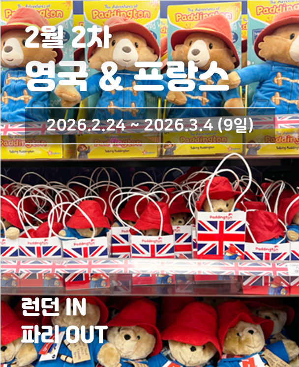 영국 런던 (4박) + 옥스포드 & 코츠월드 근교투어 > 프랑스 파리 (3박) + 베르사유 & 오베르쉬르우아즈 근교투어
