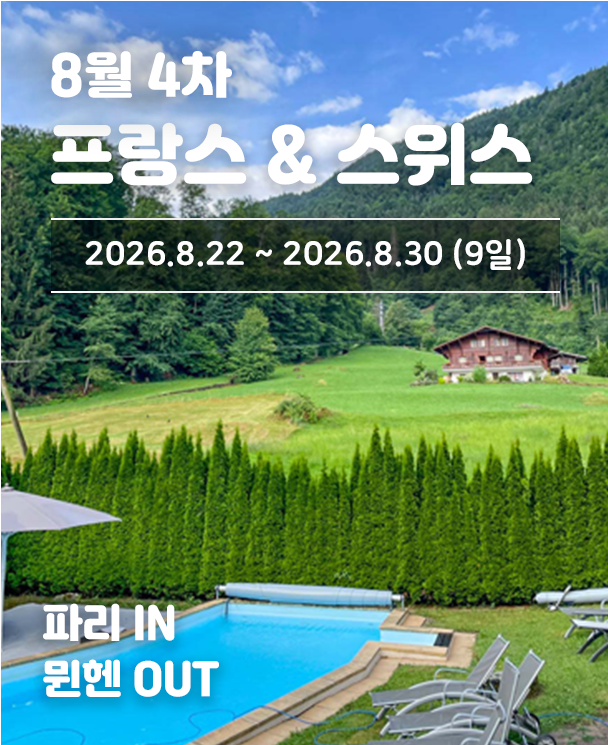 회사생활을 하면서 직장권태기가 와서 나에게 주는 선물로 여행을 가볼까 하고 휴가내어 9일 프랑스&스위스 마이유럽 세미패키지에 참여하게 되었어요:)처음엔 패키지 여행만 알았지 세미 패키지는 처음 접했는데 내용을 보니 훨씬 좋을 것 같아서 예약했어요 유럽여행 준비 중 가장 걱정 되었던 부분 중 하나가 소매치기와 무거운 캐리어를 끌고 다니는 부분이었는데, 도시간 이동이나 숙소에서 다른 숙소로 이동할 때엔 전용버스로 이동해 매번 큰 짐을 가지고 다닐 필요가 없어서 좋았습니다. 항시 필요한것들 위주로만 들고 다녀서 소매치기 걱정도 크게 되지 않았구요. 게다가 이번 여행에서 함께 만나서 같이 다닌 일행분들과 이번 패키지 여행했었던 일행분들도 다들 너무 좋으셔서 간간히 마주치면 인사도 따뜻하게 나누고 함께 하는 것만으로도 든든했습니다. 이번여행을 통해 잊지 못할 추억 하나가 생겼네요^^ 마이유럽 좋은 추억 만들어주셔서 감사합니다 🩵흠... 하지만 뭐든지 100프로 만족할수는 없는 법.. 단점이라고 하면.... 날씨가 도와주질 않더라고요...여행엔 무엇보다도 날씨인데.. 그래서 제약되는 부분이 많아 아쉬웠습니다.. 다음엔 여름에 한번 가보려구요:-)