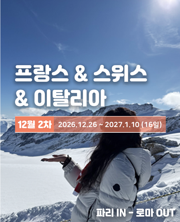 안녕하세요, 이번에 마이유럽을 통해서유럽 3국 세미패키지로 다녀왔어요!프랑스, 스위스, 이탈리아 이렇게세 나라를 한 번에 도는 일정이라자유여행으로 가기엔 동선 짜는 게 꽤 어렵더라고요.그래서 고민하다가 세미패키지로 신청했는데너무너무 만족스러웠던지라 후기 남겨요!파리에서 시작해서 리옹, 인터라켄, 윈헨,베네치아, 피렌체, 로마로 이어지는 일정이었습니다.나라가 여러 개라 이동이 가장 걱정이었는데전용버스로 숙소 앞에서 타고 내리는 구조라생각보다 훨씬 편했습니다!유럽 자유여행 해보신 분들은 아시겠지만캐리어 끌고 기차 환승하는 게 은근 힘들잖아요?그런 스트레스 없이 전용 버스에 짐 싣고 앉아서 이동하니까차창 밖 풍경 보는 것도 여행 같더라고요 ㅎ0ㅎ파리에서는 전일 자유일정이 있어서루브르 박물관도 다녀오고, 몽마르트 언덕도 올라가고저녁엔 센강 따라 산책도 했습니다.베네치아에서도 전일 자유일정이 있어서사실상 패키지 여행이라고 하기엔애매할 정도로 편안하고 좋앗어요!단체로 계속 붙어 다니는 일정도 아니었고각 도시마다 자유시간이 꽤 넉넉했거든요!특히 인터라켄에서도 전일 자유시간이라융프라우 가는 친구들이랑 같이 올라갔다가내려와서 마을 산책하면서 풍경 구경했는데 좋았습니다.스위스는 아무래도 그냥 걷기만 해도 힐링이더라고요 :)숙소는 3~4성급 호텔 위주였는데전체적으로 깔끔하고 위치도 괜찮았습니다.2인 1실이었지만 크게 불편한 점은 없었고조식 포함이라 아침 걱정도 없었어요.여행 매니저님도 정말 친절하셨고궁금한 거 물어보면 바로 알려주셔서처음 가는 유럽여행이었는데 정말 즐겁고마음 편안하게 잘 즐기다 왔어요.평소 유럽 자유여행 가고 싶은데동선 짜는 게 막막하신 분들이나복잡하게 이동하는거 싫어하시는 분들이라면세미패키지 추천해드리고 싶어요!